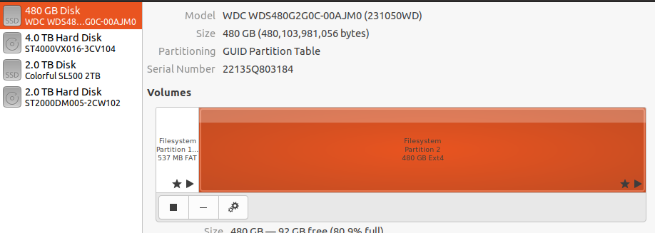 此时系统磁盘被 Ubuntu 占满,包含以下典型分区: